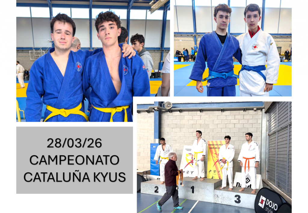 Este sábado 28/3/26 Nuestros alumnos: Pau, Daniel, Adria y Fernando participaron en el Campeonato de Cataluña de Kyus organizado por la FCJiDA en la localidad de Badia del Valles. Mucho nivel…y nuestro Fernando consiguió el bronce en la categoria -81 de amarillo a verde. Enhorabuena a todos!!!